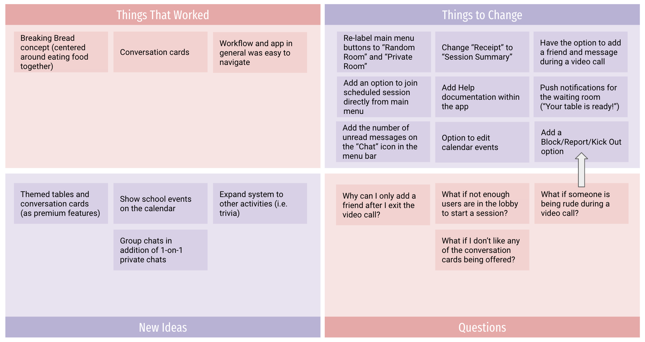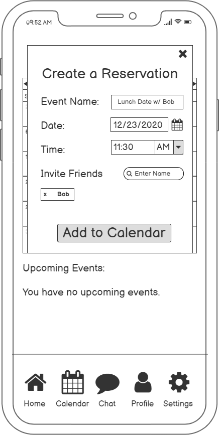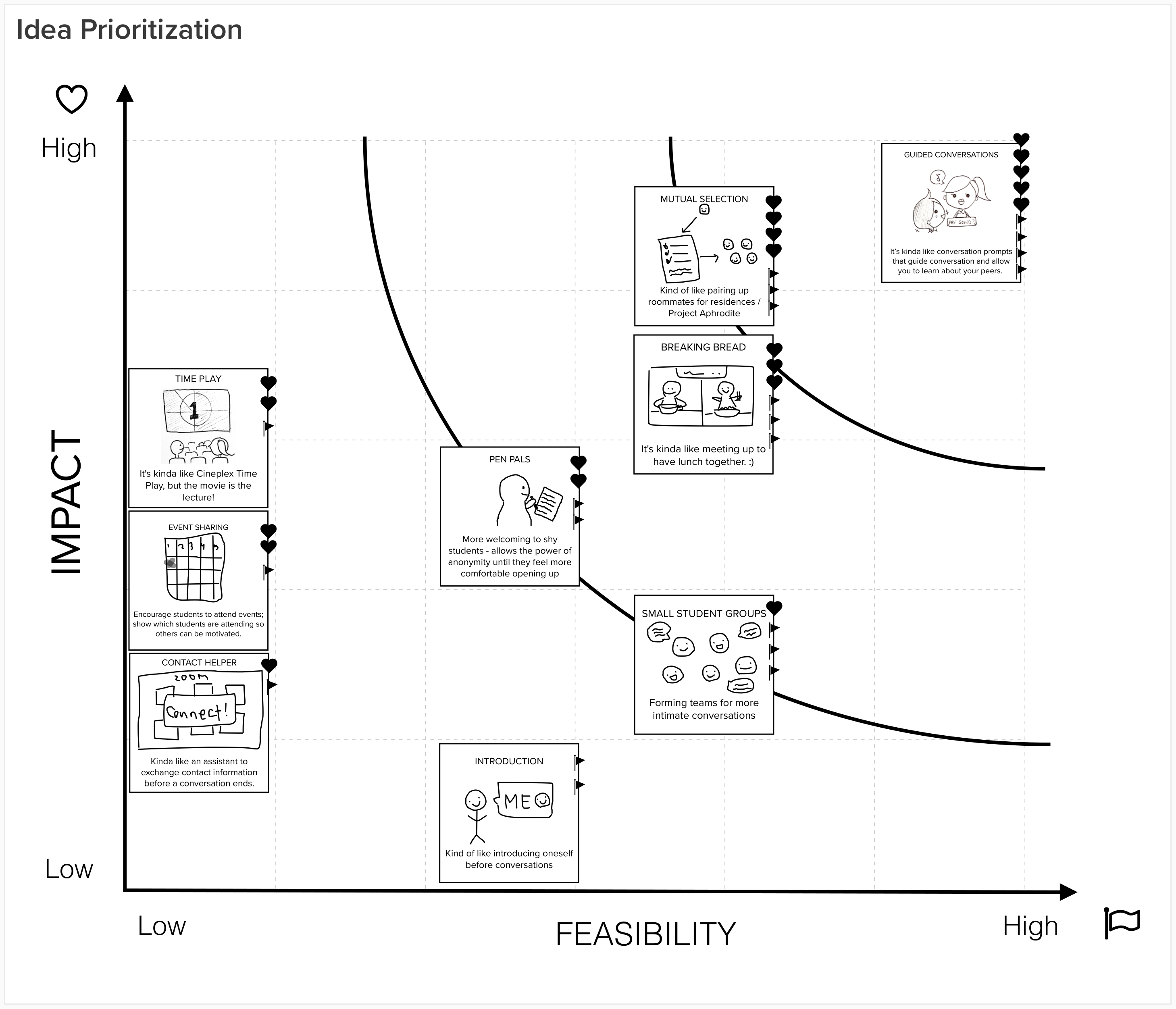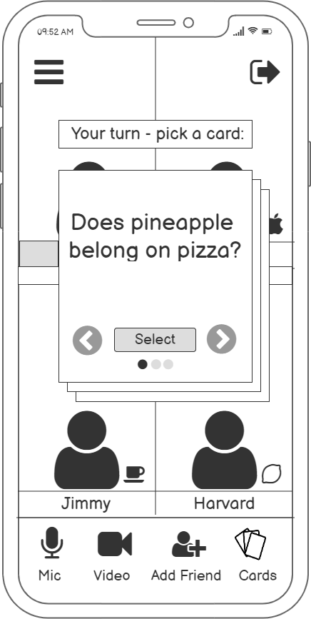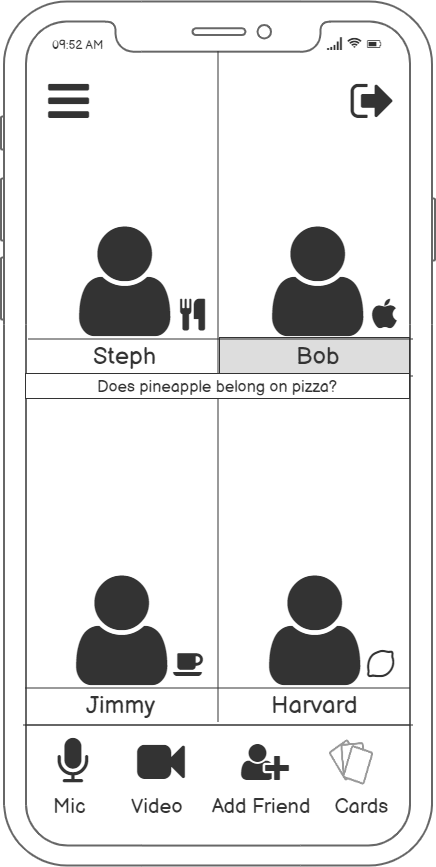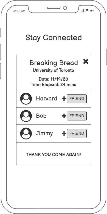 Building on to this core idea, we combined it with other feasible functions: guided conversation and adding friends (mutual selection), as our minimum viable product.